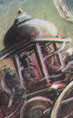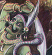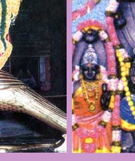 to Right: Kali Ma; Lord Saturn (Shani Bhagwan) on golden crow (Thirunallar